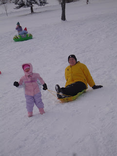 Hannah normally would lay on her belly when being pulled up the hill. However, she soon decided that she would "snowboard" her way up the hill. It was very cute to witness. She was getting bolder and bolder by the time we left.